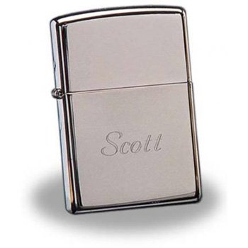 This high-polish chrome Zippo lighter features your name on it's classy finish. Your flask can be personalized with one line of text with up to 15 characters. Font is used as shown and cannot be altered. Please review your text carefully as your gift will be personalized exactly as you entered your text. This includes punctuation.